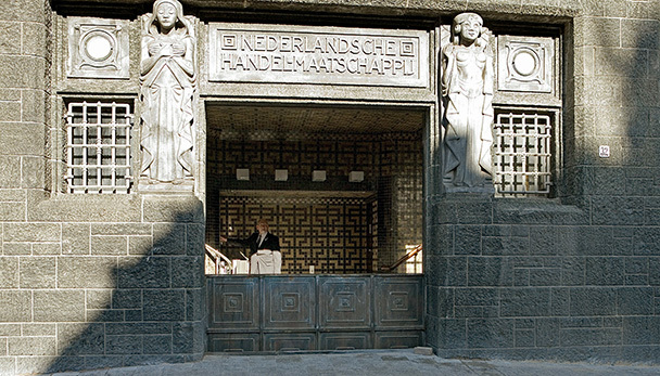 The De Bazel building was designed by and is named after Karel Petrus Cornelis de Bazel (1869-1923), one of the most famous architects of his time. The building is his most famous and largest design, which was intended as the headquarters for the Nederlandsche Handel-Maatschappij (NHM), a banking company that existed under that name until 1964 when it merged with one of the largest banks in the Netherlands. Construction was started in 1919 and completed in 1926, three years after the architect's death. In 1991 the building was given the status of a national monument and after an enormous renovation, the Amsterdam City Archives has been housed here since 2007. The City Archives, formerly the Municipal Archives of Amsterdam, is a municipal institution and manages archive material related to the history of Amsterdam and the people of Amsterdam. It has no commercial objectives. The City Archives also manages the archives of various churches, hospitals, associations and companies in Amsterdam.