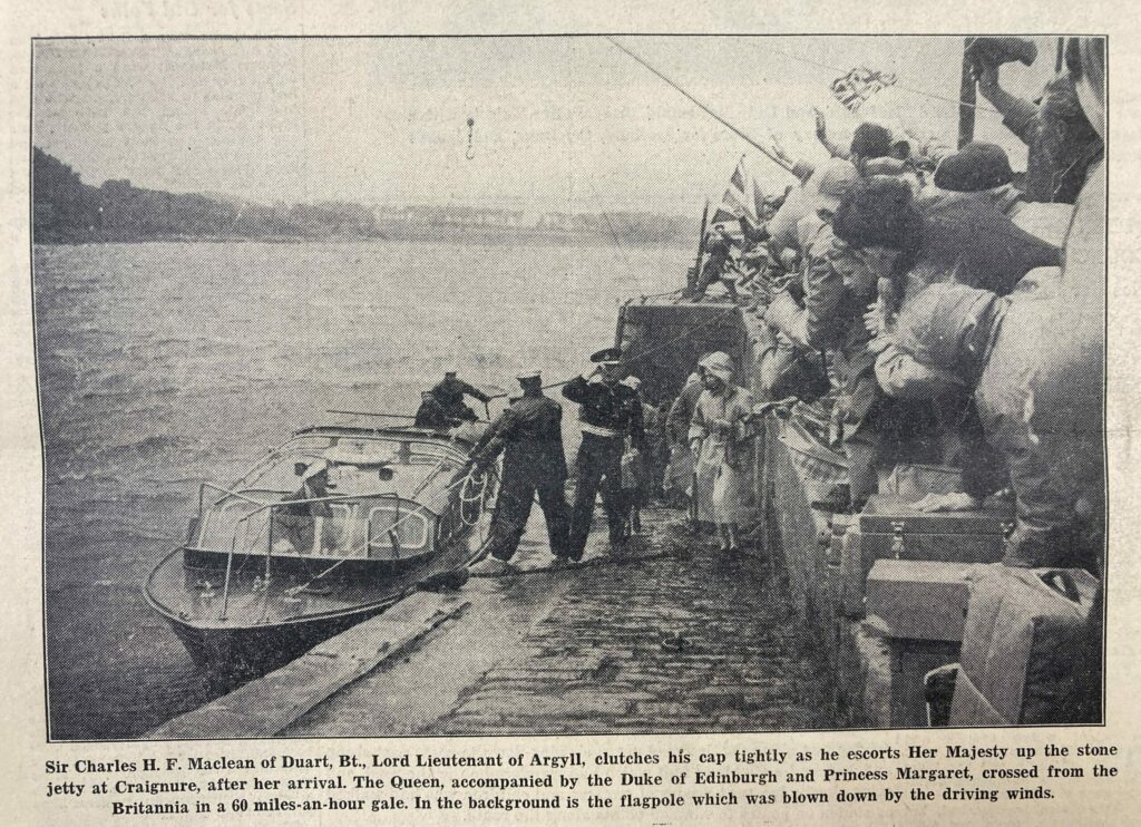The weather had changed dramatically overnight before Queen Elizabeth’s scheduled visit to Mull in August 1956. A strong westerly gale had blown up, and as the Queen, Prince Philip and Princess Margaret made their way back to the Royal Yacht Britannia after a short stop in Oban they had to battle against 60mph winds and driving rain.