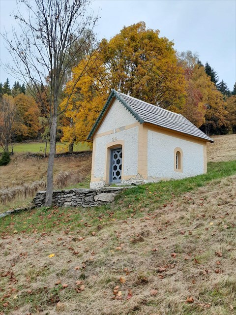 Our goal is a chapel which is located in Velká Úpa in a part of the town called Přední Výsluní on its south hill near a road connecting a centre of the town with Jan’s houses. The chapel was formerly a pilgrimage place for locals.