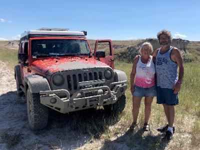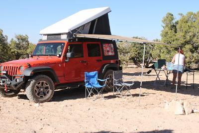 Our Jeep is a 2015 JKU Rubicon. The camper top makes it quite unique because it's a complete hard top replacement made by Ursa Minor in San Diego and there are hatches so you can climb up from inside when the weather is bad. The first photo was in the Badlands of South Dakota. The last photo is from a dispersed camping area in Utah during our 2018 TransAmerica Trail trip going from the Outer Banks of North Carolina to the Pacific coast in Oregon. Who made the custom top for Rusty & Libby's Jeep?