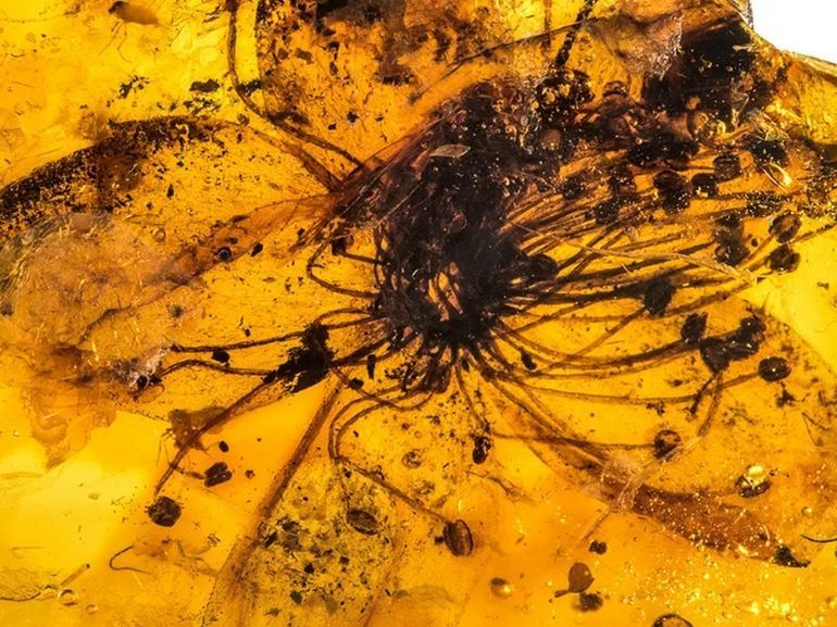 A flower in amber, Symplocos kowalewskii (a group of evergreen shrubs and trees), 38 million years old (Baltic). 🔽