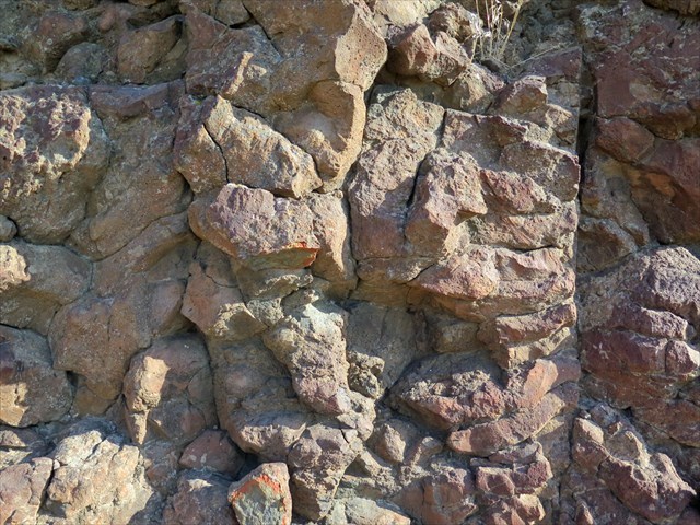 The flow began in northcentral Idaho and exited down the ancestral Snake River. The exposed Elephant Mountain basalt ranges in color from gray-brown to brown-red due to surface exposure and iron oxidation. The specimen found here are Plagioclase (a feldspar mineral), and Olivine (Magnesium Iron Silicate), in a clinopyroxene and glass (crystal structure) with both normal and transitional magnetic polarity. The basalt is of the upper colonnade and top of the flow which is rubbly, cracked and angular. Small to large vesicles (gas holes) is observable in the basalt. Older members of the Saddle Mountain Formation (Pomona, Equatzel, Umatilla) as well as Elephant Mountain are exposed at the top of the ridge.