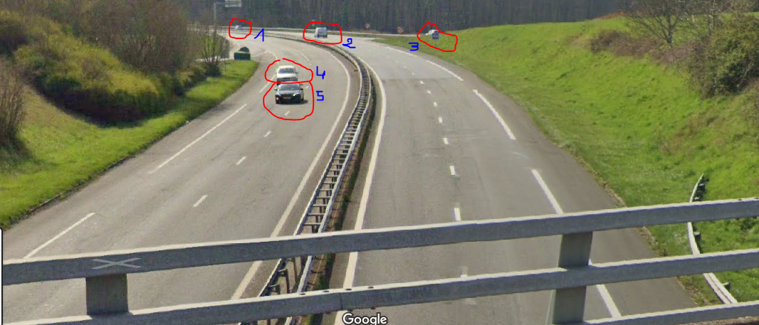 Pour simplifier la tâche prenez une photo et comptez le nombre de véhicules visibles, comme dans l'exemple ci-dessous: