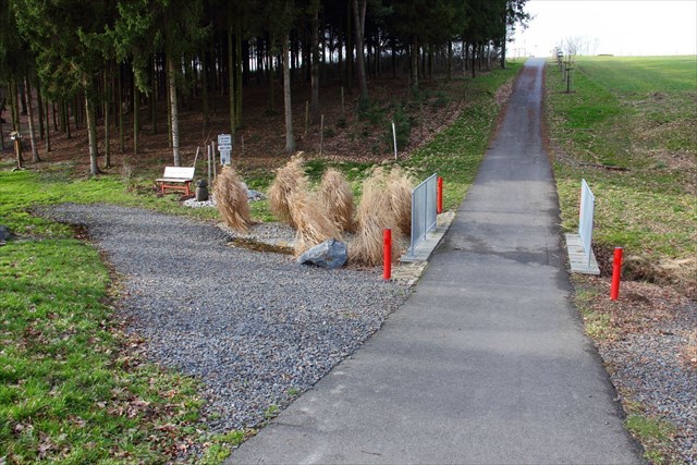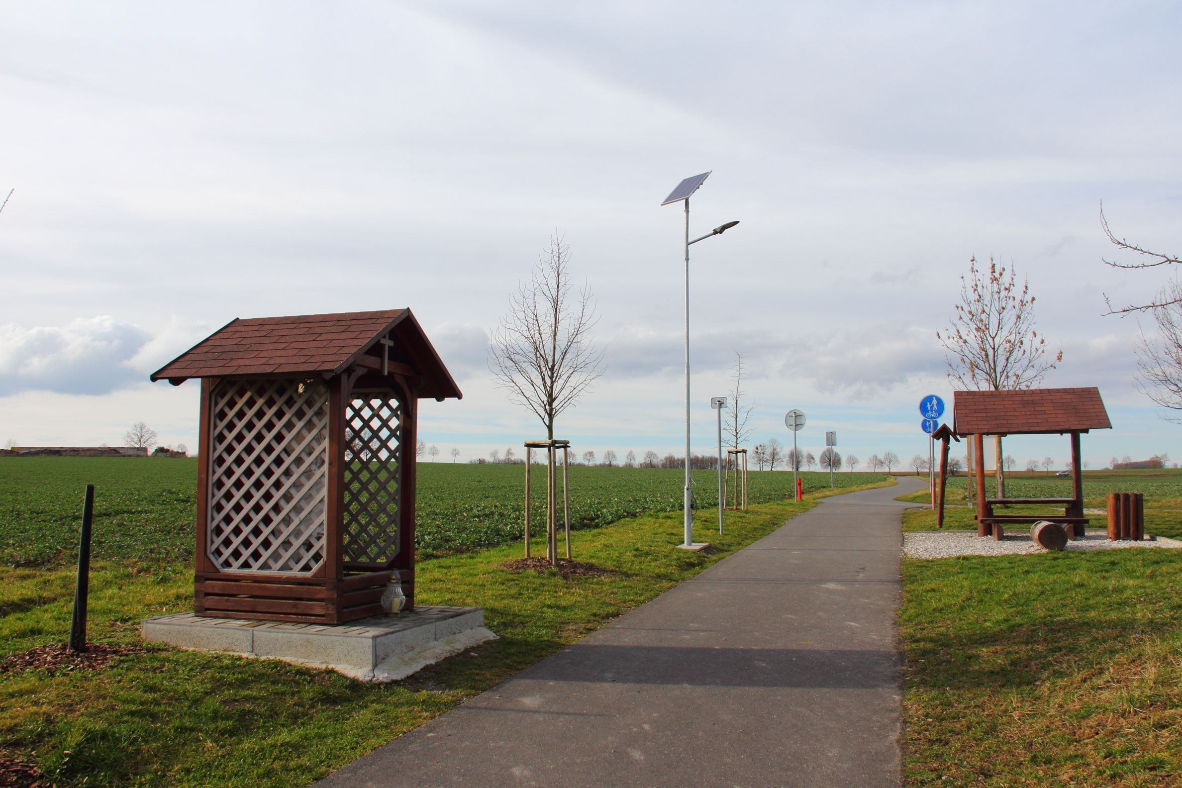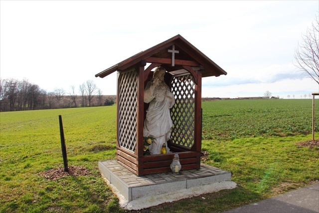 Na úvodních souřadnicích se nachází dřevěná kaplička, v níž je umístěna dřevěná socha Ježíže, která vnikla na řezbářské show pořádané v obci. Původní objednatel si ji ale nepřevzal a tak ji odkoupila obec, nechala postavit přístřešek a umístila u cyklostezky nad obcí.
