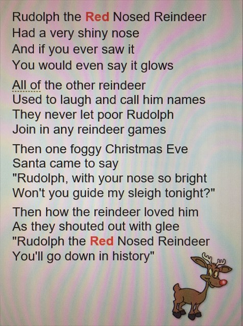 Congregate at the coords wearing your red nose (we will bring some so don't worry) and we will then have a group carol service. Well ... we will sing Rudolph the Red Nose Reindeer