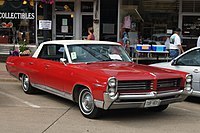The Pontiac Bonneville is an automobile built by Pontiac from 1957 until 2005. Bonnevilles were full-sized, with the exception of a brief period of mid-size between 1982 and 1986. The brand was introduced as a limited production performance convertible during the 1957 model year. The Bonneville (known as the Parisienne in Canada until 1981), and its platform partner, the Grand Ville, are some of the largest Pontiacs ever built; in station wagon body styles they reached just over 230 inches (5.8 m) long, and at 5,000 pounds (2,300 kg) and more were also some of the heaviest cars produced at the time.
