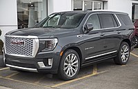 The Chevrolet Tahoe and GMC Yukon are part of General Motors' full-size SUV family and are differentiated from the similar Chevrolet Suburban and GMC Yukon XL primarily by the length of the passenger and cargo area behind the C pillar. An upscale trim Denali sub-model joined the Yukon lineup for the 1999 model year and the Cadillac Escalade is a closely related upscale version sharing the same platform.