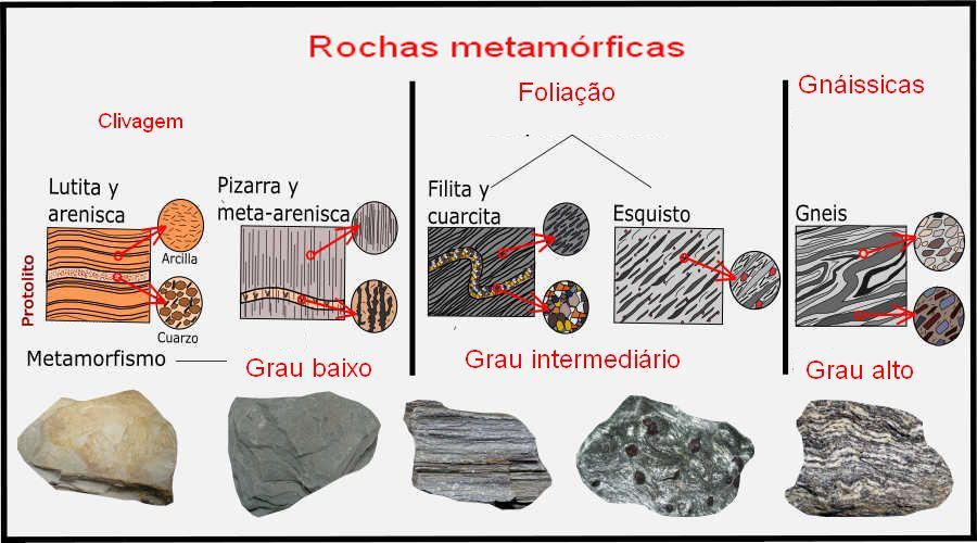 corresponding to different degrees of metamorphism. Rocks with