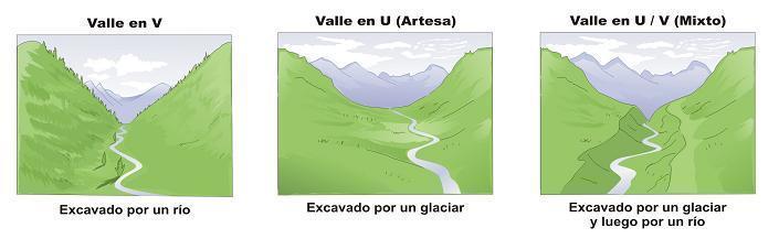uno fluvial en la forma que deja la erosión. El valle glaciar