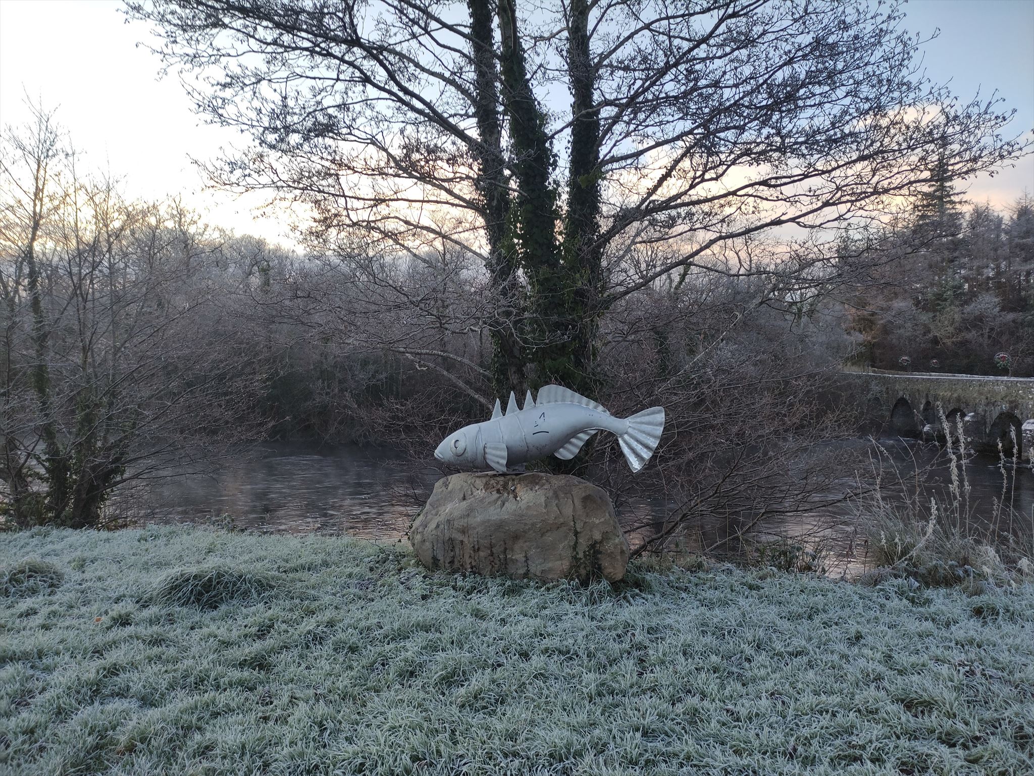 The welded stainless steel artwork is aptly located by the banks of the Laune, which is well known for both salmon and trout fishing.
