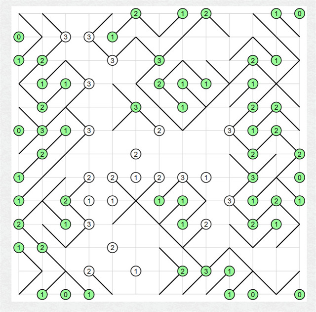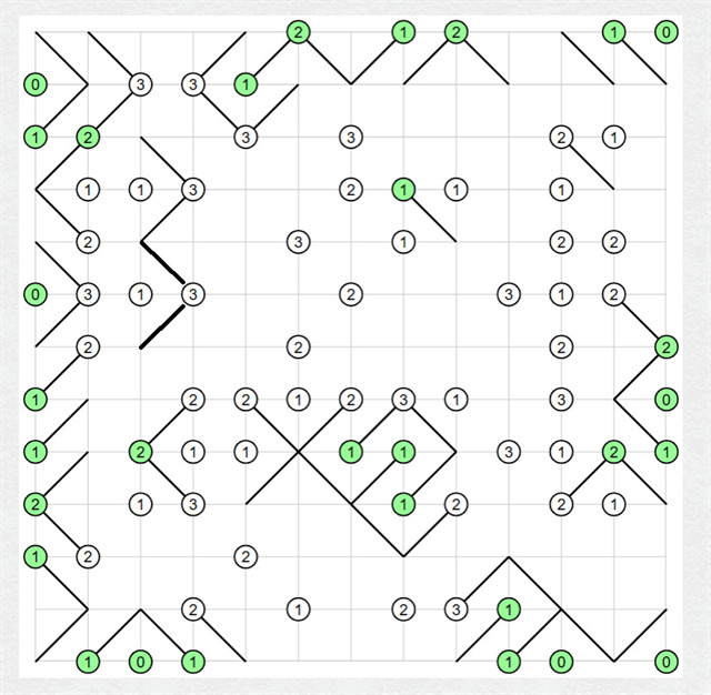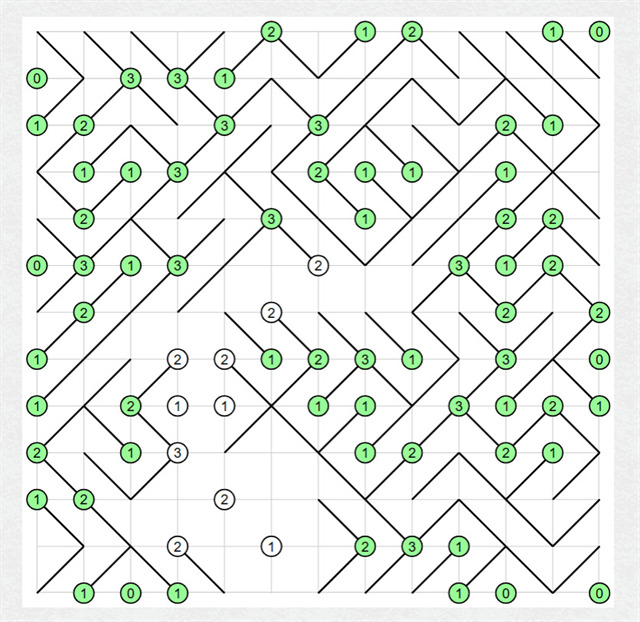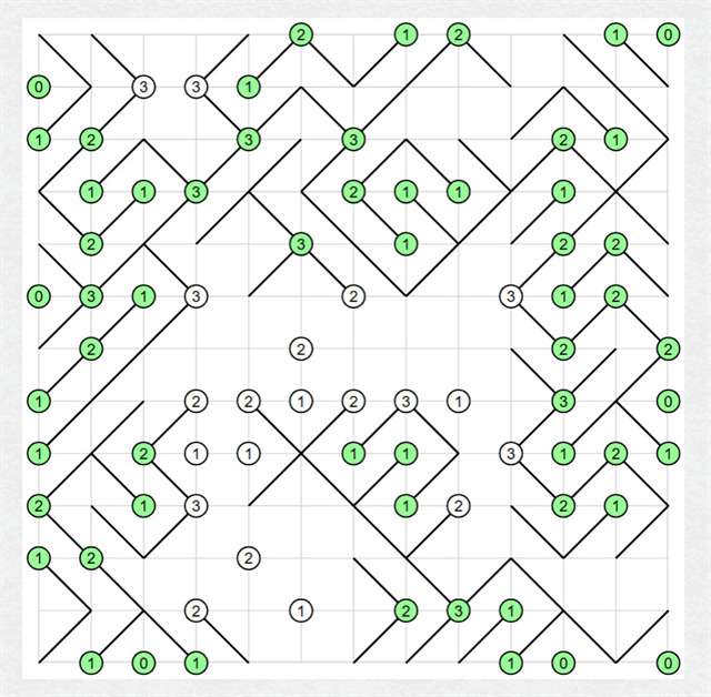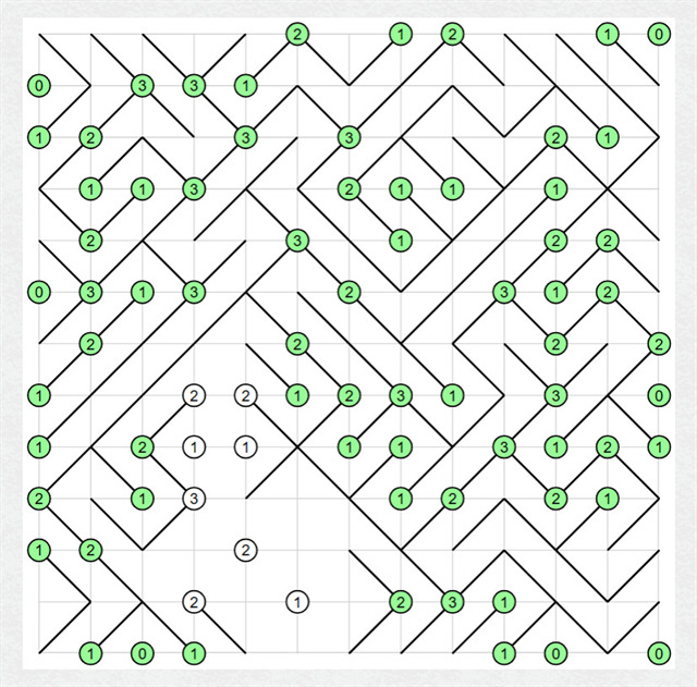 Pravidla jsou celkem snadná. Máte mřížku s čísly rozdělenou do čtverců. Do každého čtverce musíte nakreslit úhopříčně čáru. Máte tak vždy dvě možnosti: zleva dole doprava nahoru nebo zleva nahoře doprava dolů. Čísla udávájí, kolik čar z daného bodu vede. (pokud je číslo uprostřed mřížky, obklopují ho čtyři políčka/čtverce a mohou z něho tak vést 0 - 4 čáry, na kraji mřížky to mohou být jen dvě čáry, v rohu jedna) Další podmínkou pak ještě je, že čáry nesmí nikde vytvořit žádný ohraničený uzavřený útvar jako čtverec, obdélník, ani jakýkoliv jiný mnohoúhelník, jakkoliv velký.