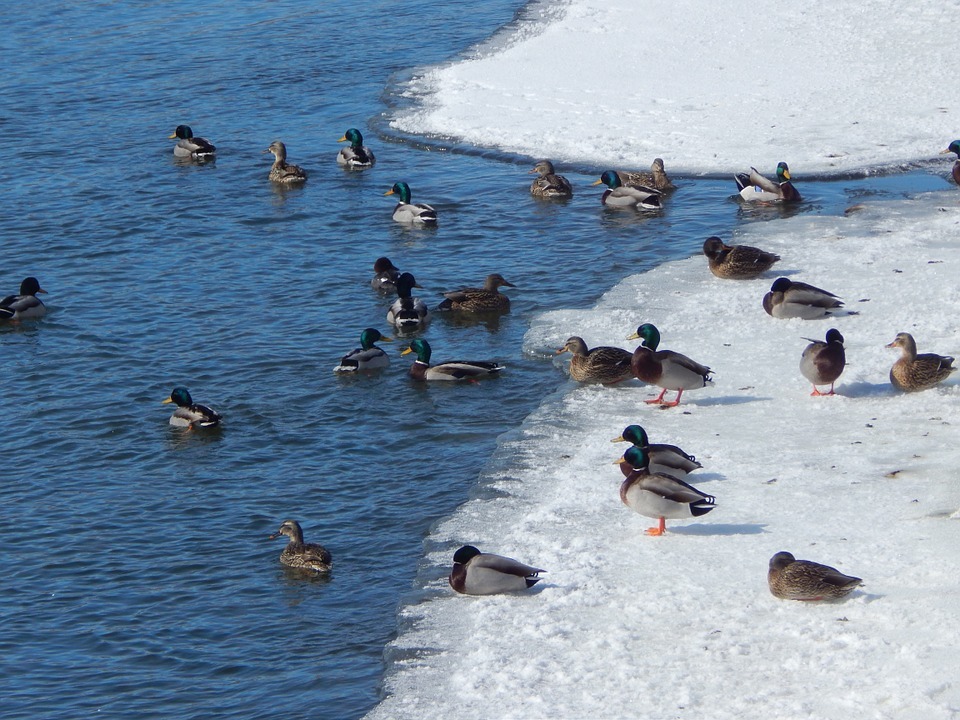 Není-li řeka nebo potok zcela pokrytý vrstvou ledu, kachny si bez problémů potravu najdou, nebo přelétnou tam, kde voda teče rychleji a nezamrzá. Pokud jim ale krmivo nosí lidé, pak je pro kachny samozřejmě pohodlnější toho využít a zůstávají na místě. Nicméně, je nutné volit vhodné krmivo, odpovídající množství a hlavně je nepřekrmovat.