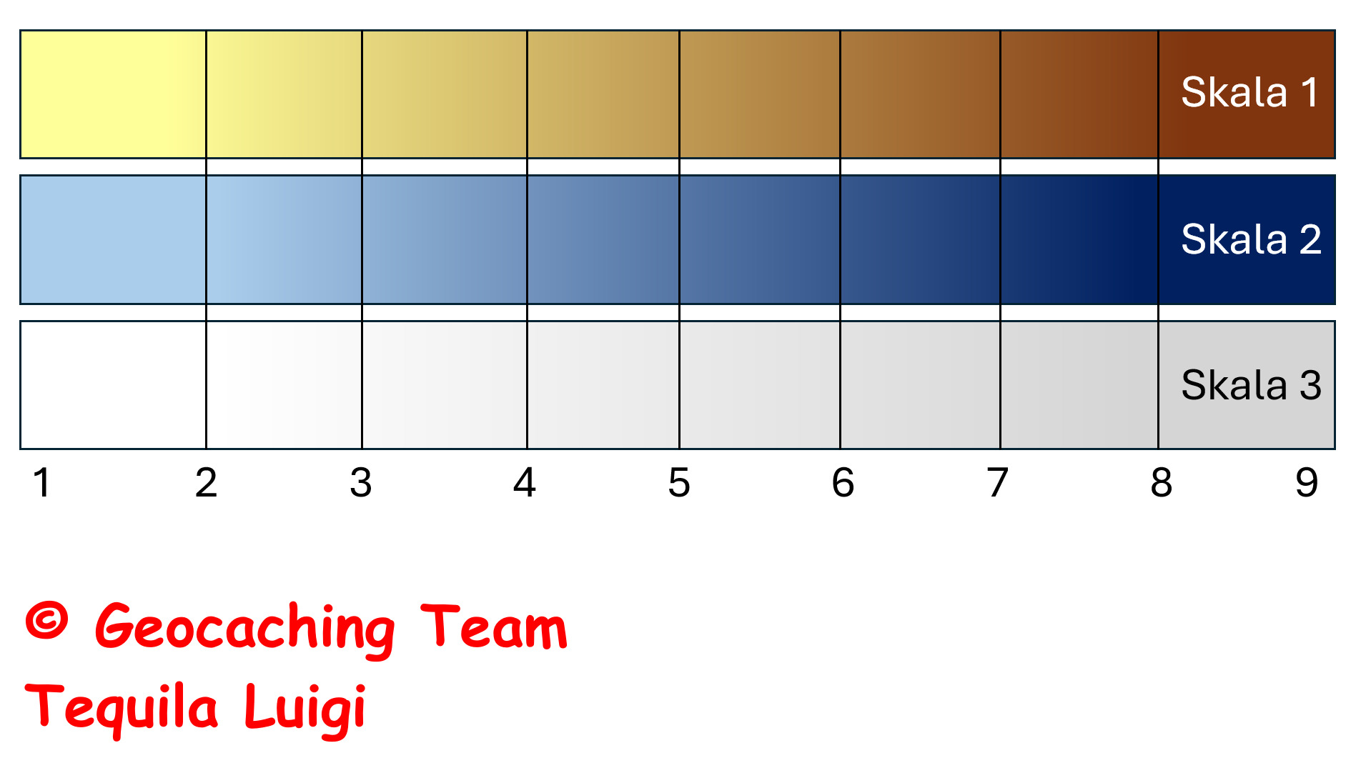 Ordnet die Verfärbung eurer Probe bitte anhand der folgenden Grafik ein. (Als Antwort schreibt uns welche Skala und welche Nummer eurer Probe entspricht.)