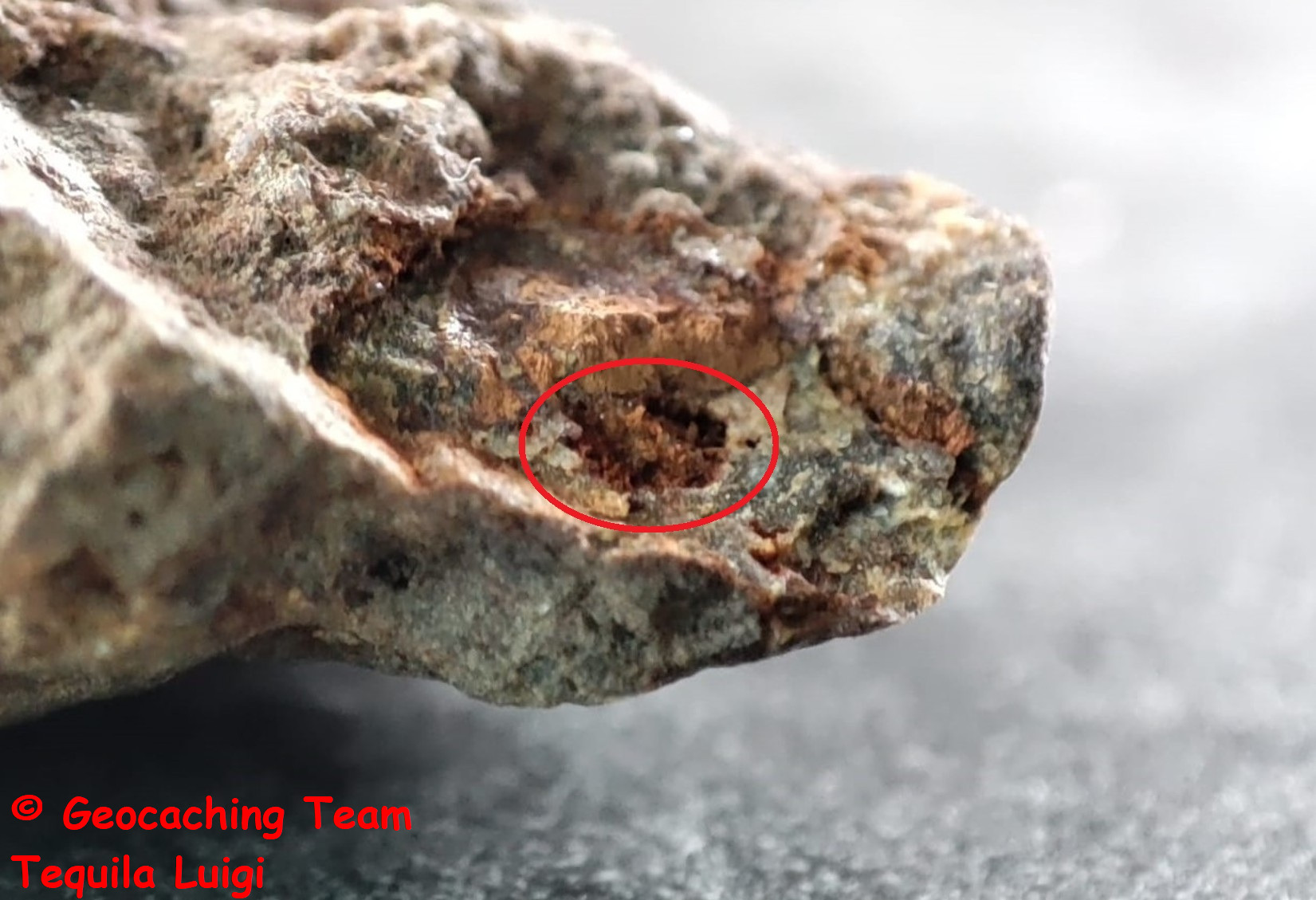Begebt euch an die im Listing angegebenen Koordinaten. Hier findet Ihr die Flussbettkante in einer scharfen Kurve der Sülz. Sucht hier am Sülzufer und im Wasser nach Grauwackestücken mit (verwittertem) Markasit (Auf dem Foto oben dargestellt) sowie nach einem Stück Grauwacke ohne Markasit (grauer Stein ohne rötliche Spuren) als Vergleich.