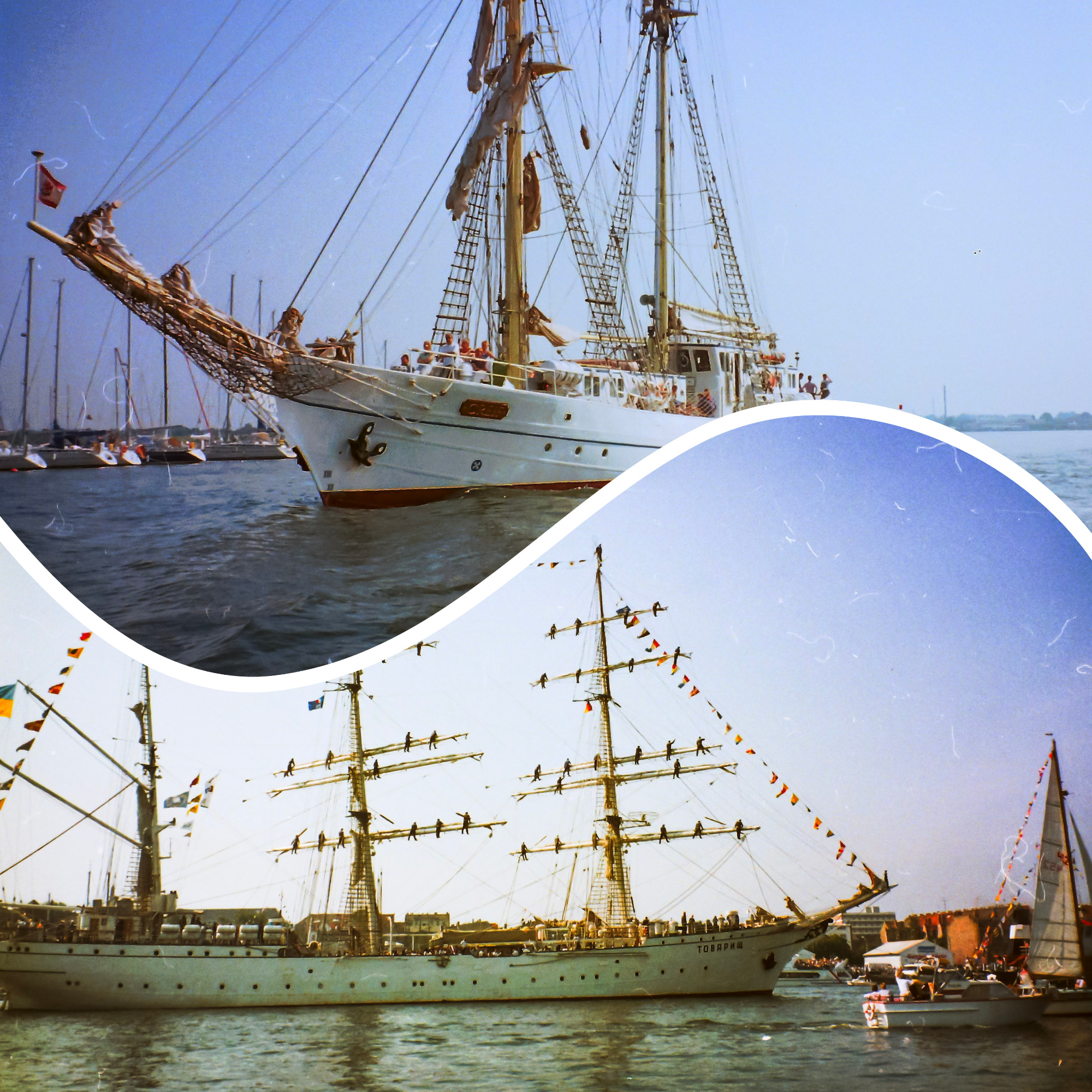 oben: die 'Greif' (ehemals Segelschulschiff Wilhelm Pieck), unten: die 'товарищ' (unter ukrainischer Flagge, heute die Gorch Fock I)