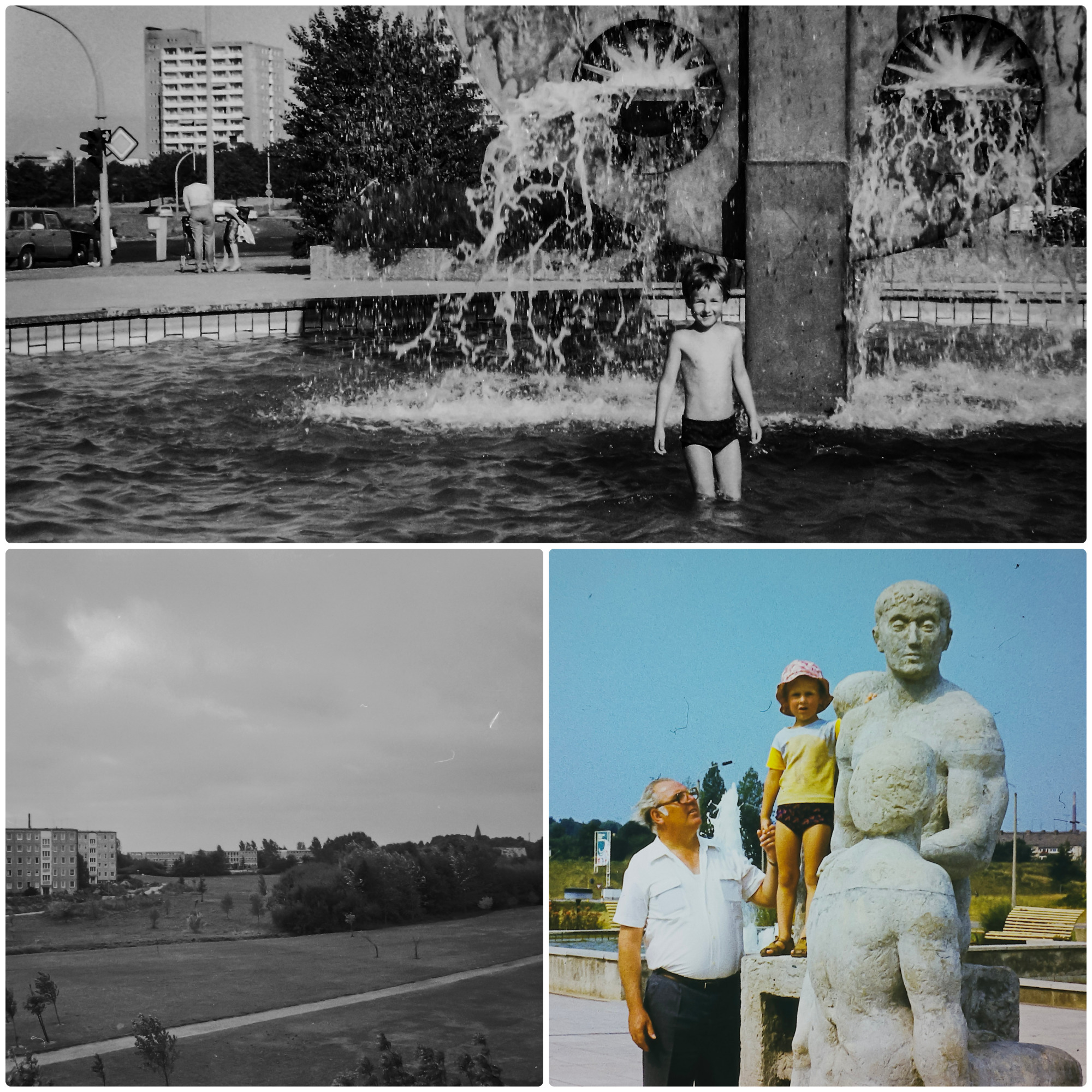 So beginnt meine Reise in der Nähe der Großeltern. Gewohnt haben sie in der Otto-Nuschke-Straße hinten beim Kindergarten am Kringelgraben. Täglich ging es raus - entweder an den Strand, in die Stadt oder einfach auf den nächstbesten Spielplatz um rum zu toben. Ja, auch hier am Kosmos-Brunnen verbrachte ich viel Zeit. Und nicht nur am Brunnen, nein, auch im Brunnen. Damals Gang und Gebe, heute ungewiß in Bezug auf die Nutzungsordnung. Laut aktueller Rostocker Statuten darf man wohl rein, aber nicht trinken. Könnten Keime drin sein. 😉