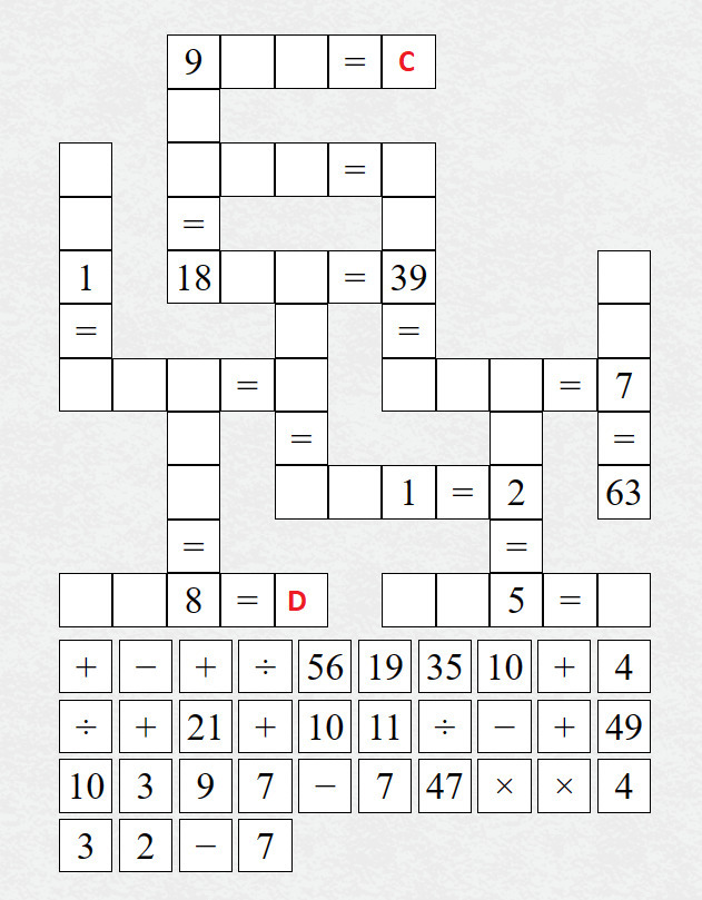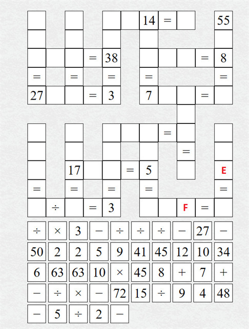 Pravidla jsou snadná. Čísla a znaménka dole prostě doplníte do políček nahoru, tak, aby všechny výpočty vyšly správně. (Káždé číslo nebo znaménko dole použijete právě jednou a žádné nezbyde) Takže si nakonec trochu zopakujete matematiku :) Myslím, že to ani v té nejtěžší verzi, kterou jsem vybrala, není nic hrozně těžkého a pokud vám třeba nešly ty předešlé rébusy, tak věřím, že s tímhle si poradí snad každý... Při doplňování bude potřeba myslet aspoň na jeden další křížující výpočet dopředu, ideálně na dva. Příklad tentokrát nedávám, myslím, že jak na to, je jasné.... Kdyby vám to přece jen vše logicky odvodit nešlo, tak si tipněte. Těch možností tam přece jen až zas tolik není.