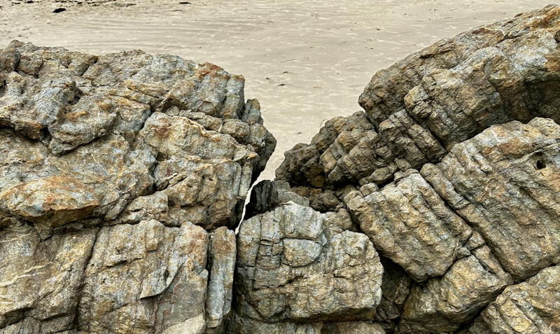 On Shelly Beach are rocks formed on the deep ocean floor, showing evidence of sedimentary and tectonic forces from 500 millions years ago.