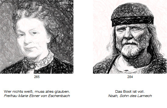 Um die Finalkoordinaten zu erhalten sind die folgenden 20 Zitate zu prüfen. Anschließend musst Du die Zahlen, welche sich unter den Zitaten befinden, addieren. Alle FALSCH ZUGEORDNETEN Zitate ergeben die letzten 4 Stellen der Nordkoordinaten (N 47° 0F.FFF') und alle RICHTIG ZUGEORDNETEN Zitate die letzten 4 Stellen der Ostkoordinate (E 015° 2R.RRR'). In Bezug auf Kürzungen und Übersetzungsspielräumen bitte ich um Nachsicht. Es kann durchaus sein, dass das verwendete Zitat in einer leicht anderen Form (nicht aber Bedeutung) ebenfalls überliefert wurde.