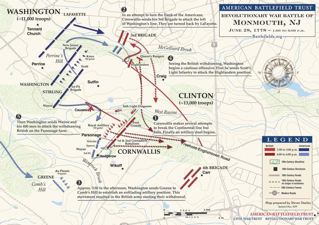 In June 1778, George Washington’s 14,000 Continental Army engaged the British 20,000 Army in the Battle of Monmouth. This battle became the largest artillery battle in entire Revolutionary War.