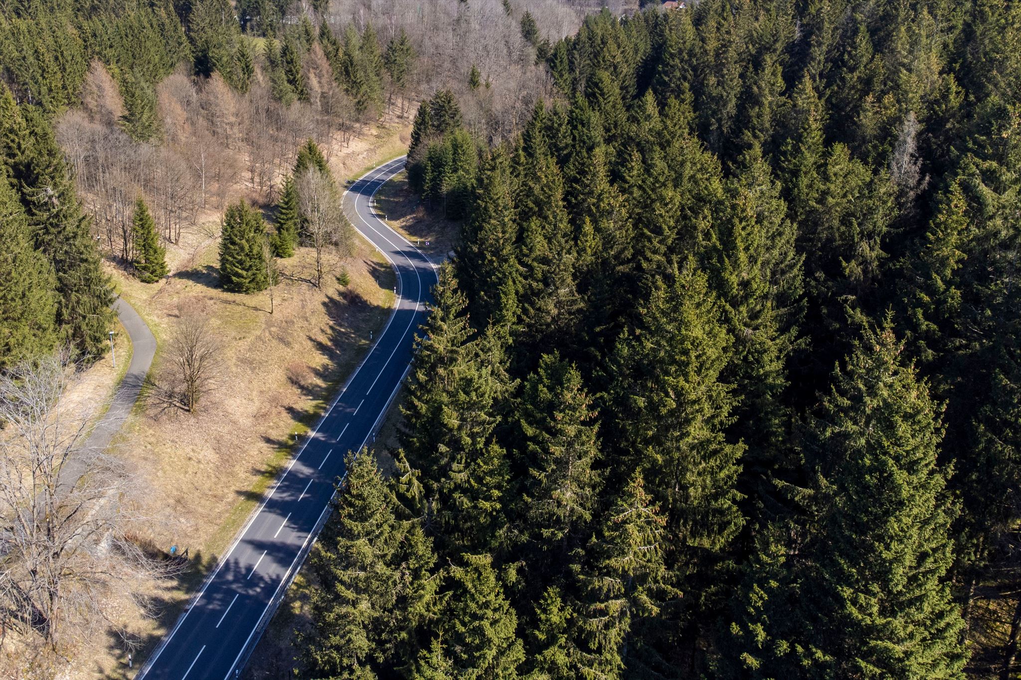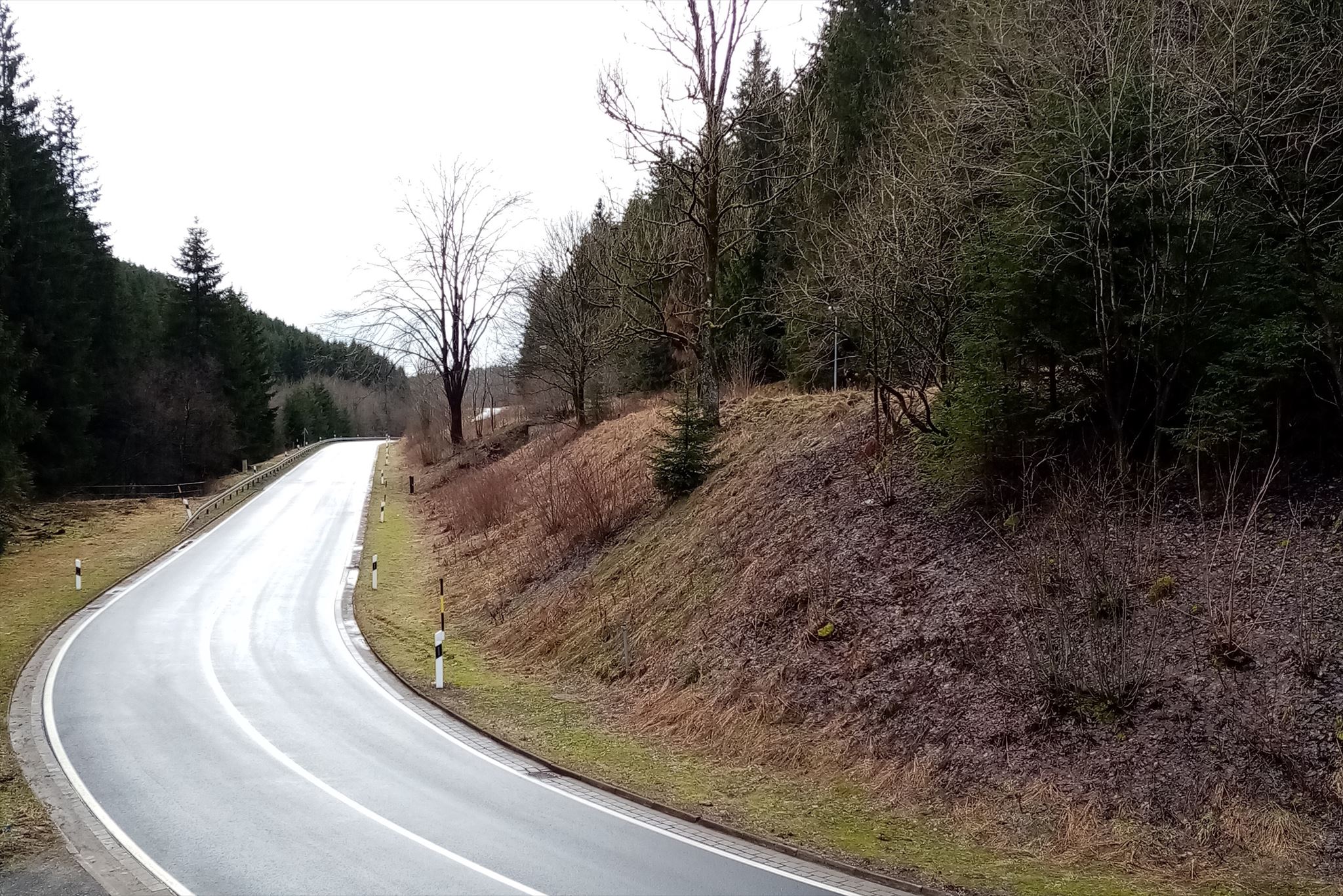 Die Trasse führte vom Bahnhof Frankenscharrnhütte kommend links neben der Straße das Zellerfelder Tal hinauf und schwenkte hier in Richtung Bahnhof Clausthal-Zellerfeld ein.