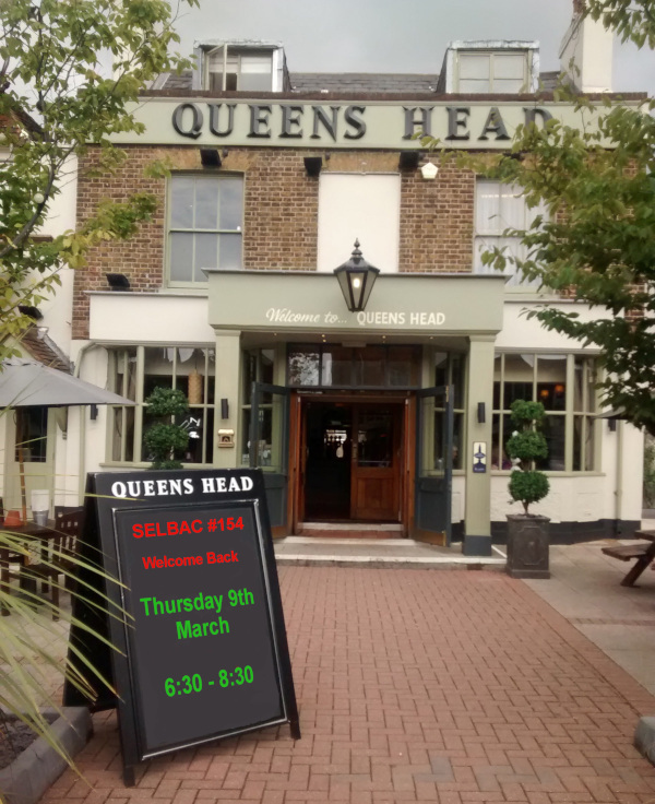 SELBAC returns for the first indoor event in 3 years in Chislehurst for March. We shall be at the Queen's Head, High Street, Chislehurst BR7 5AN on Thursday 9th March from 6.30pm until 8:30pm and will have a dedicated table, probably at the back on the left. There is wheelchair access at the venue from the rear car park. If you arrive and are given a free Tarot card reading, then you are in the wrong part of the pub! There is probably a quiz starting at 8:30.