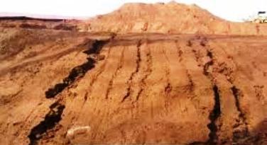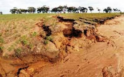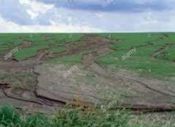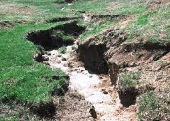 4. Gully Erosion : is similar to rills, but on a much larger scale, depth and velocity where masses of water pass through an area at a high rate, typically during rain storms or melting snow, and removing soil to greater depths. These often result in mudslides or landslides