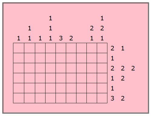 Die Zahlen hinter den Zeilen und über den Spalten definieren die auszufüllenden Blöcke von Kästchen: Jeder Zahlenwert entspricht genau der Länge eines Blockes. Bei mehreren Zahlen entspricht ihre Abfolge der Reihenfolge der Blöcke. Zwischen den Blöcken muss sich mindestens ein leeres Feld befinden.
