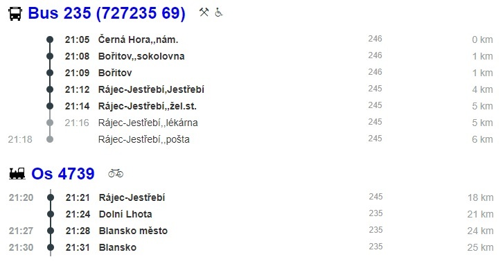 Do Černé Hory je možné dorazit autobusovou dopravou. Detaily nejvhodnějších spojů jsou uvedeny na obrázcích níže. Využít lze samozřejmě také jakýkoliv jiný spoj, či osobní dopravu :-)
