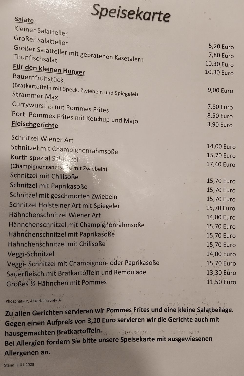 Da das leibliche Wohl nicht zu kurz kommen soll, gibt es natürlich auch eine Speisekarte.