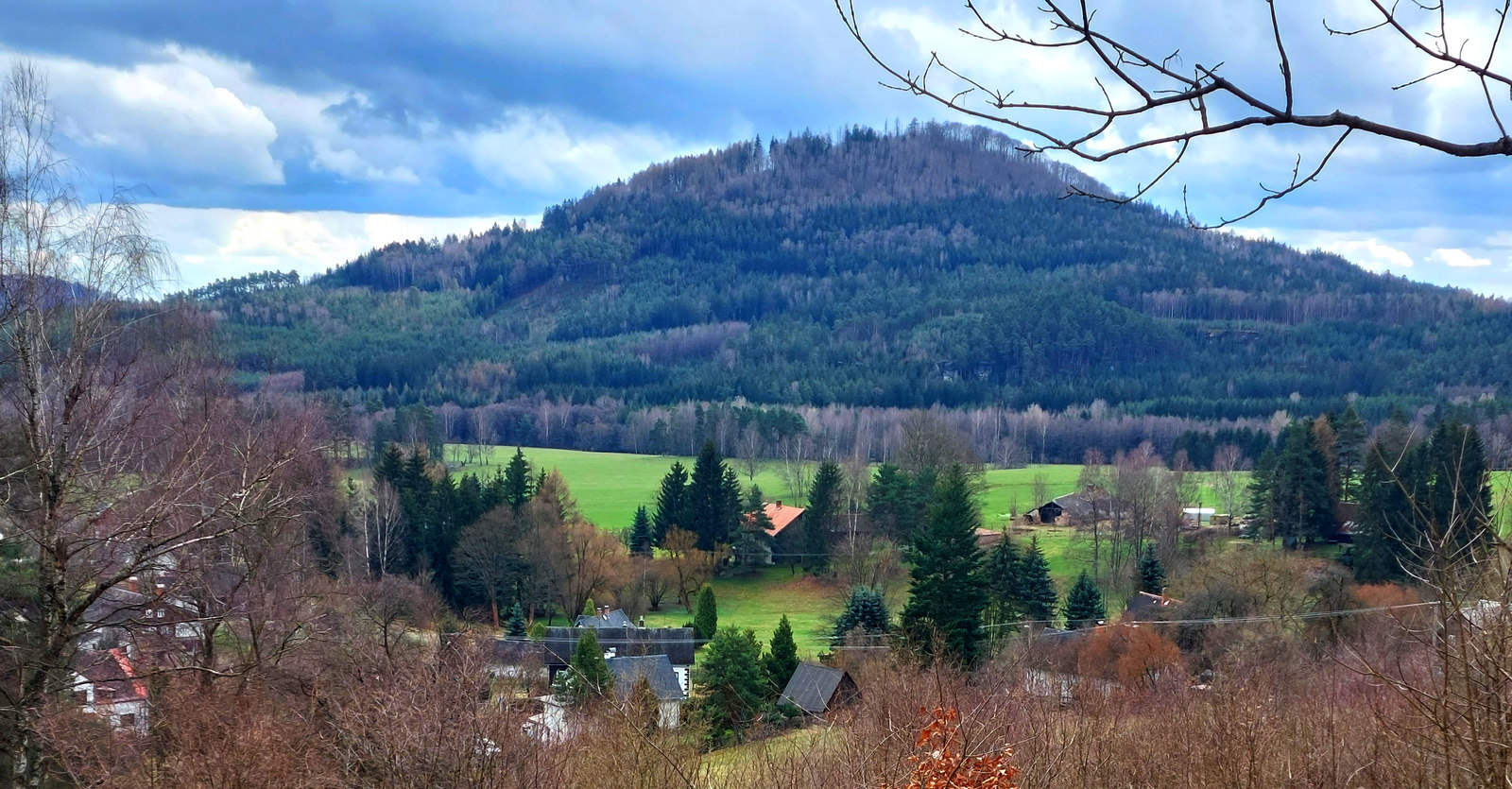 Výhled na udolí Trávníku a na Zelený vrch se Schillerovou vyhlídkou