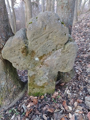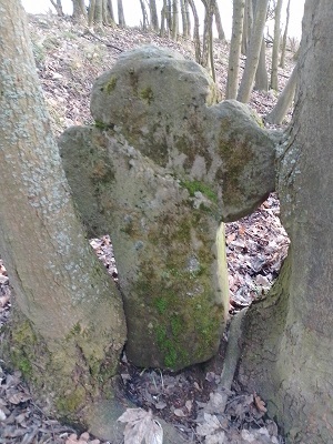 Kříž o rozměrech 79x60x26 stoji v lesní strži lesa Zabilec. Původně však stál u dnes již zrušené cesty z nedalekých skal Čertových hradů, odkud se dovážel materiál na stavbu Josefovské pevnosti. Ke kříži se vztahuje pověst, že při nošení dřeva vzal dělník za Zálesí velký kmen na rameno, cestou uklouzl a byl jím rozdrcen. Pohřben byl na místě, kde je kříž. Jinde se dočtete, že se tady při převážení dřeva převrátil vůz na vozku, který šel vedle vozu.