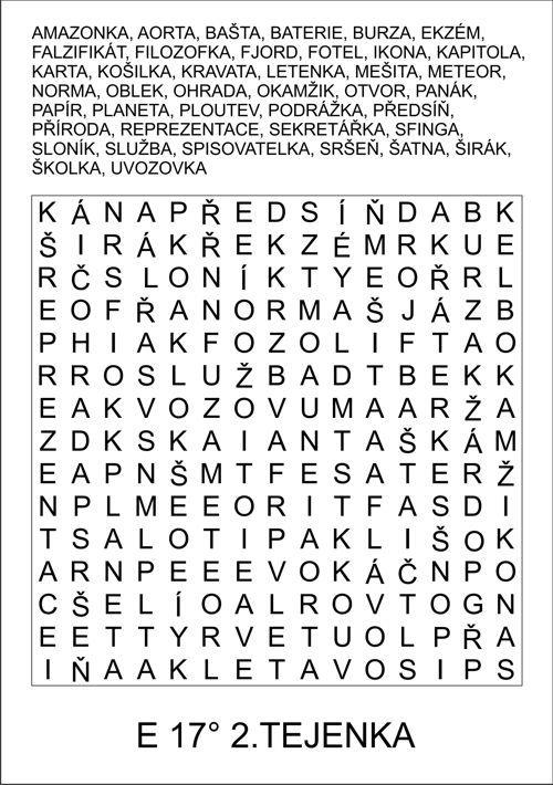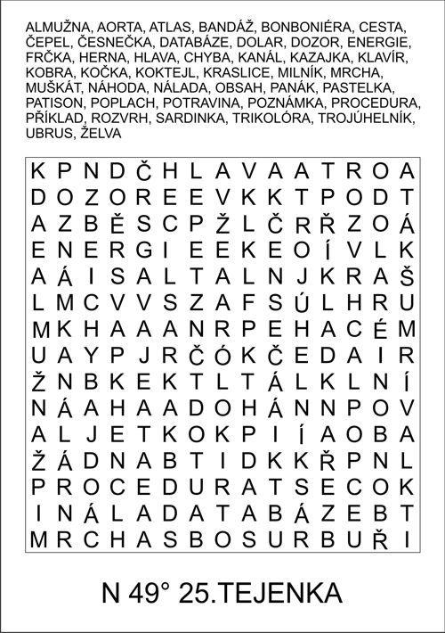 Po vyškrtání všech slov zůstanou některá písmena v osmisměrce nepřeškrtnuta a tato písmena při čtení po řádcích zleva doprava tvoří tajenku osmisměrky.