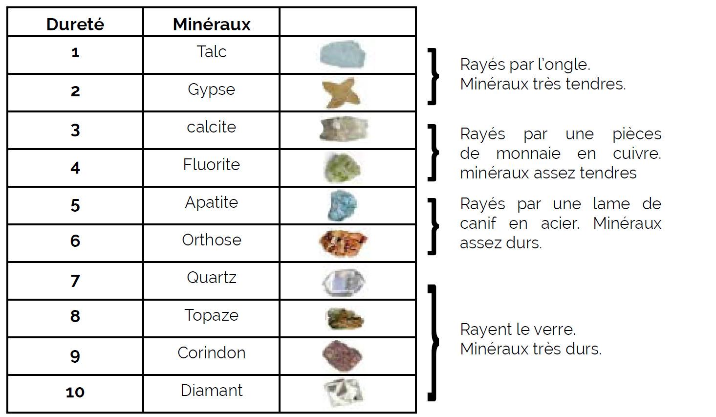 dureté 5 et 6. Ceux de dureté 7 et plus rayent le