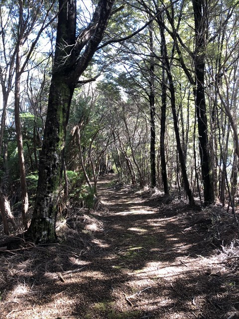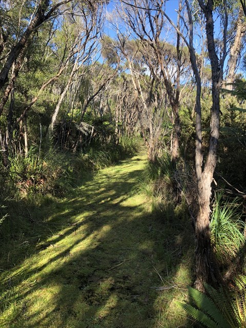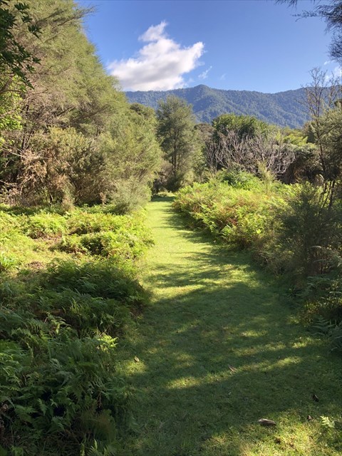 The track is stated as 1 km long, is easy going, and is wide and grassed for the most part.