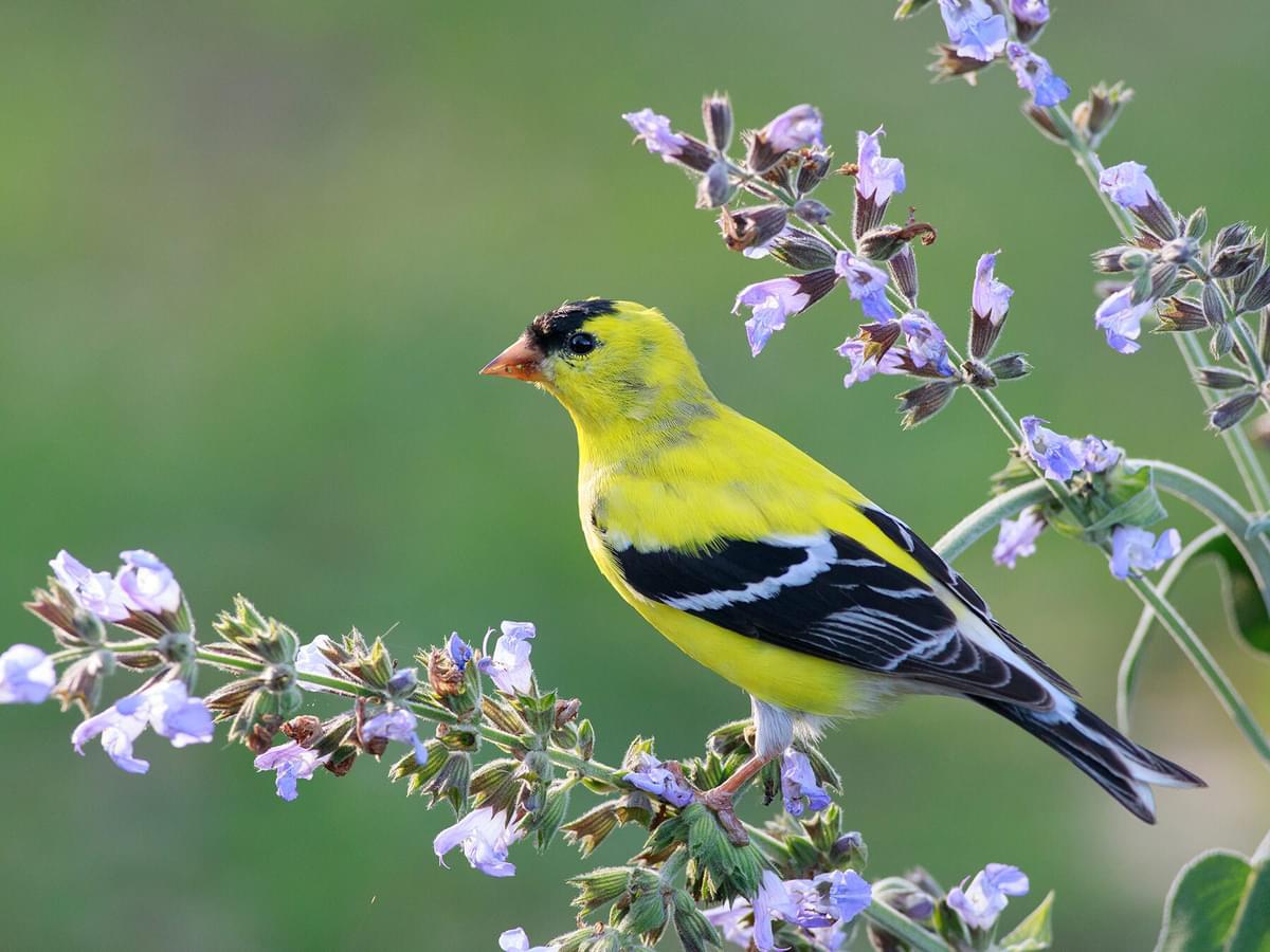 The state of New Jersey chose the American Goldfinch (Carduelis tristis), also known as the eastern goldfinch, as the state bird in 1935. The tiny yellow canary bird with a short, cone-shaped bill and a short, forked tail helps control ragweed growth in the Garden State of New Jersey by munching the weed’s seeds.