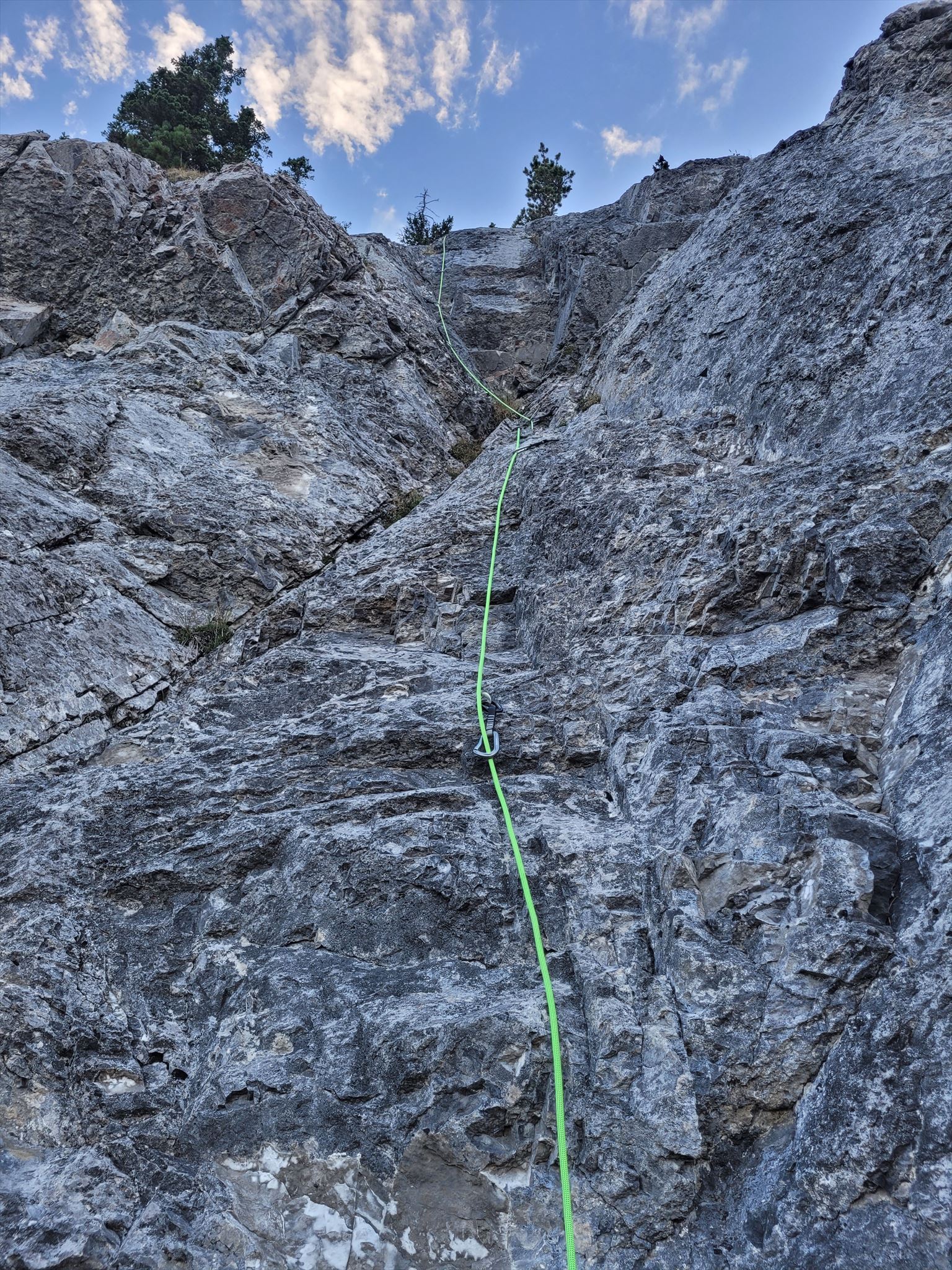 This geocache lies high up on a steep cliff face. Without the proper rock climbing equipment and knowledge, attempting to reach this geocache could easily be fatal. Even with the proper climbing equipment, you and your climbing partner will need the appropriate skills for multipitch sport climbing. Although this is a fairly easy route suitable for beginners, you must bring climbing gear and know how to use it. You will need climbing gear to access the geocache. If you are not 100% confident in your equipment or skillbase, seek guiding or training from a mountain guide!