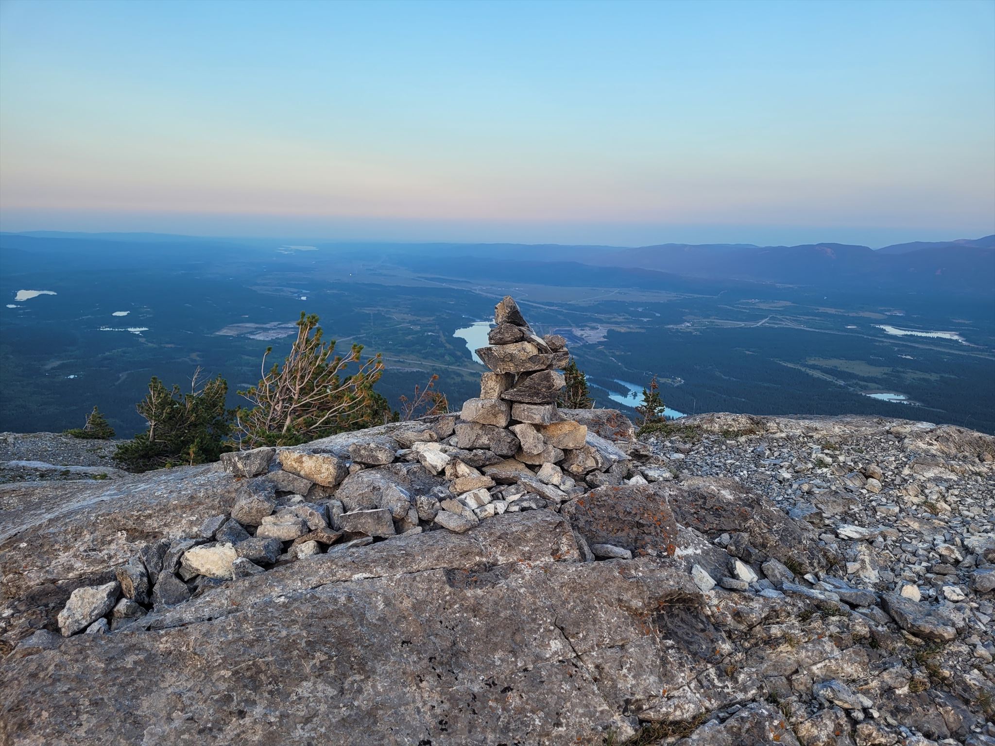 This small tube container is located on The Side Door, a fun and adventurous fully bolted 5.4 sport climbing route that climbs the East Ridge of Door Jamb Mountain. The route was developed by me in the early summer of 2023, with the first ascent by me and Graeme G. on Aug 29, 2023. This is an excellent beginner-friendly alpine-esque rock climbing route that reaches the summit of Door Jamb Mountain. This new and unique route consists of mostly easy scrambling with 3 pitches of mandatory rock climbing. Note that this geocache is an extreme challenge which requires specialized skills in multi-pitch rock climbing and the appropriate climbing equipment.