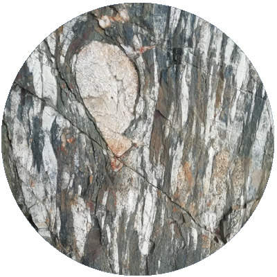 The Cesson puddingstone is made up of pebbles in the form of banks interspersed with finer sediments. These pebbles are made up of different rocks (sandstone, quartzite, granodiorite, orthogneiss, etc.). In places, the pebbles are highly deformed or even folded, making them difficult to identify.