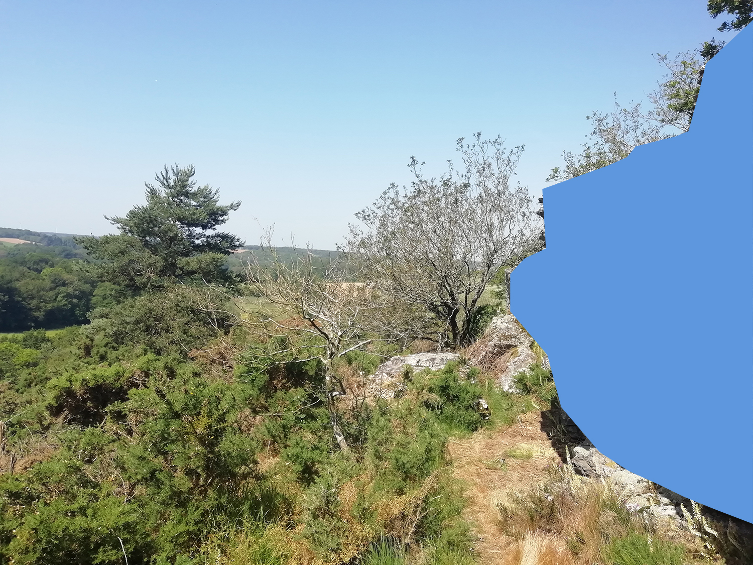 Between Ploërmel and Guillac, you can see the Ville-Bouquet rocks. This is a rocky wall, made up of puddingstone, running east-west at the top of the hill.