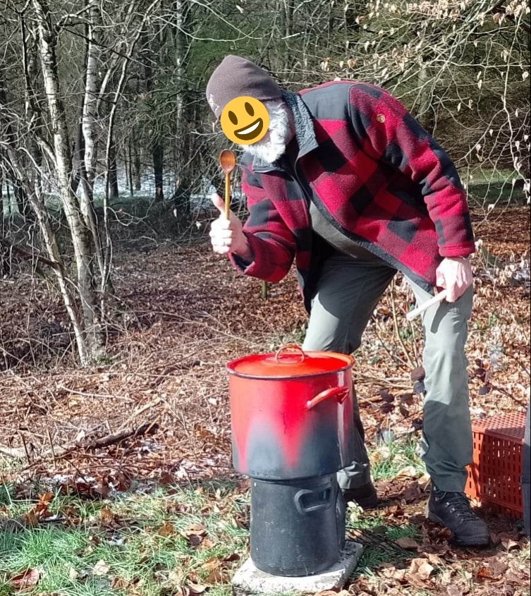 Aan het einde van de werkzaamheden is er een heerlijke kop soep uit de 'keuken' van boswachter David.