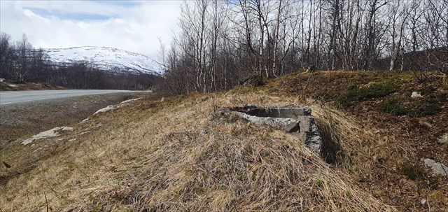 Här finns ett minne från beredskapstiden under andra världskriget, ungefär 300 meter från den Norska gränsen.