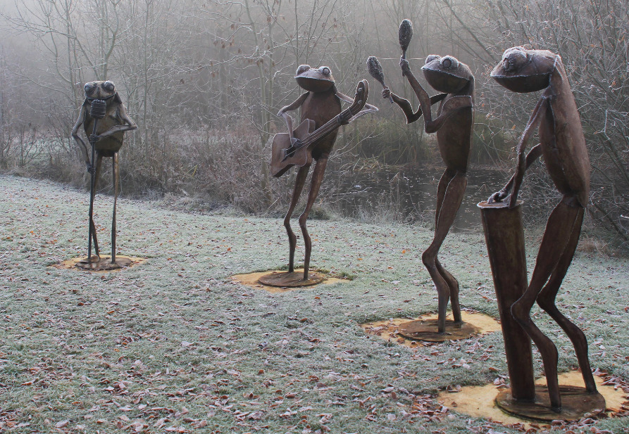 We head to Howe Park for our latest art installation the Frog Band. One of the newer art pieces in Milton Keynes it is ever popular and the park includes a lovely cafe so well worth a visit. The Frog Band was created by Emmanuel Changunda.