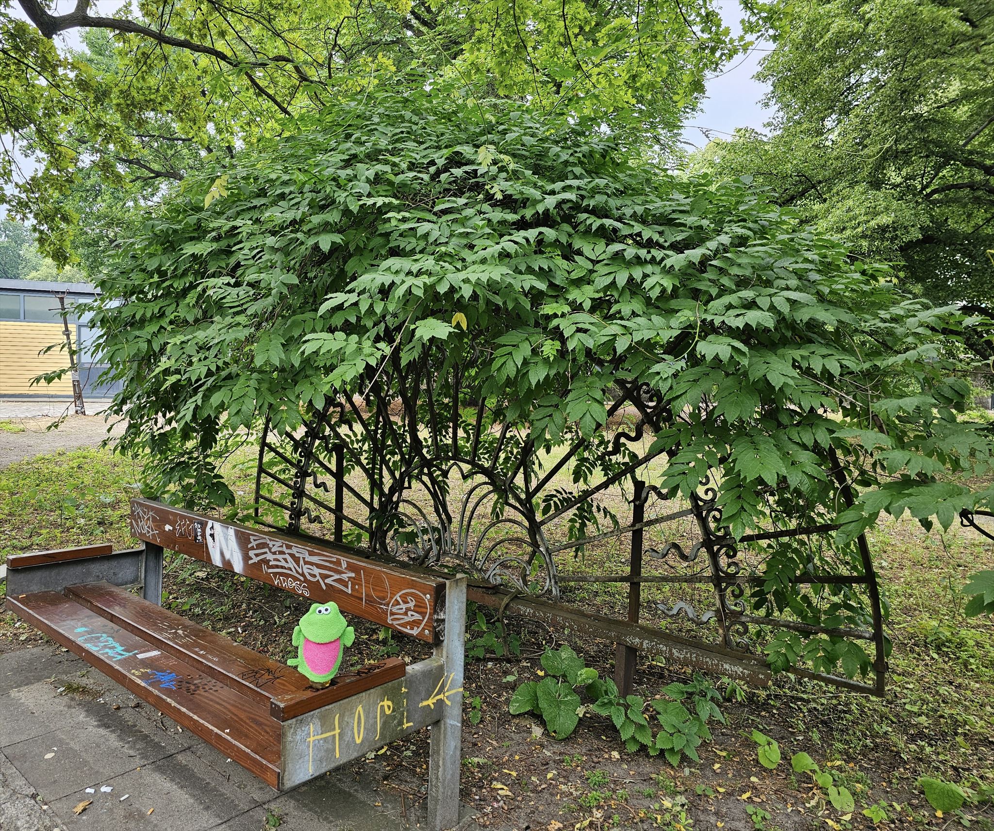 Ich muss immer an einen Pfau denken, wenn ich an der Bank vorbei gehe, aber vielleicht habt Ihr noch andere Assoziationen. Neben Fachgesprächen über begrünte Bänke, werden wir auch wieder genug Geocachingthemen haben. :-) Bis bald.