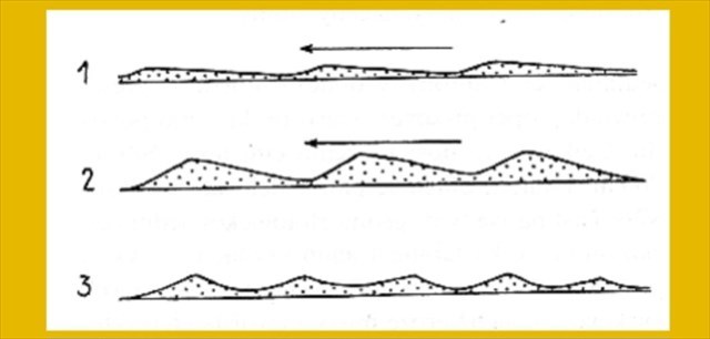 3) Přesuňte se na waypoint "Nakloněné moře". Pozorujte čeřiny na skále a přiřaďte jejich stav ke schématům 1-3 na obrázku v listingu.