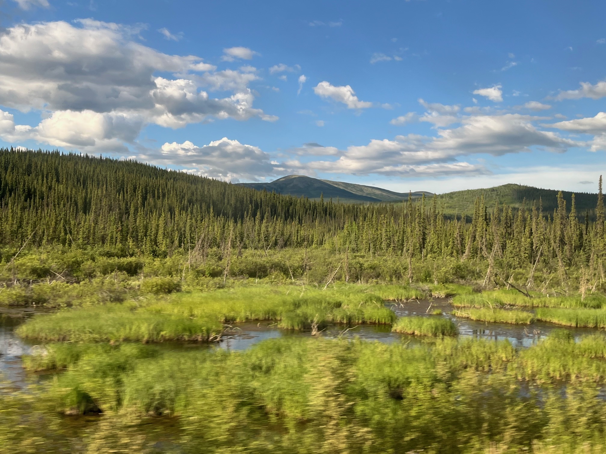 The construction of the Dalton Highway has had significant impacts on the underlying permafrost in its vicinity. The highway's construction involved clearing vegetation, excavating the ground, and creating a roadbed, which disrupted the natural insulation provided by vegetation cover and altered the thermal regime of the permafrost. These changes have led to accelerated thawing of the permafrost and subsequent ground settlement in some areas. Additionally, the highway's infrastructure, including bridges and culverts, can create thermal discontinuities that allow heat to penetrate deeper into the ground, further contributing to permafrost degradation. The disturbance of the permafrost has not only affected the stability of the highway itself but also resulted in changes to hydrological processes, such as altered drainage patterns and the formation of thermokarst features. Drunken forests can also be observed, which are intriguing natural phenomena observed in permafrost regions, where the tilting and contorted growth of trees create a visually striking landscape. These unique forests owe their name to the effect of thawing permafrost, which causes the ground to become unstable, leading to the uneven and irregular positioning of trees, as if they were standing in a tipsy manner. Steps can be taken to preserve permafrost, and monitoring and mitigation measures, such as insulation techniques and the use of thermosyphons (heat transfer devices) to promote permafrost stability, have been implemented along certain sections of the Dalton Highway to minimize the impacts on permafrost and ensure the long term sustainability of the roadway.