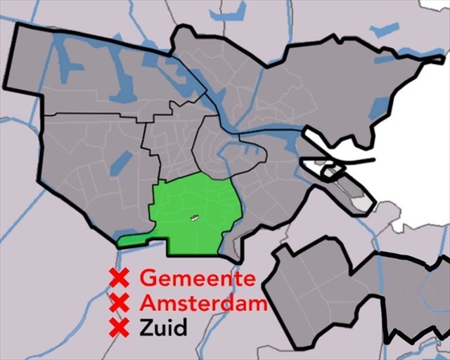 English A geocache in the middle of the borough Zuid, which means South (the green part in the map below)