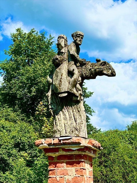 Prie kelio į Senuosius Trakus atšakos pastatyta skulptūra „Pabėgimas į Egiptą“. Ši skulptūra vaizduoja ant asilo jojančius Šv.Mariją ir Šv. Juozapą su vaikeliu. Skulptūra simbolizuoja Vytauto iniciatyva atvykusius į Lietuvą karaimus.