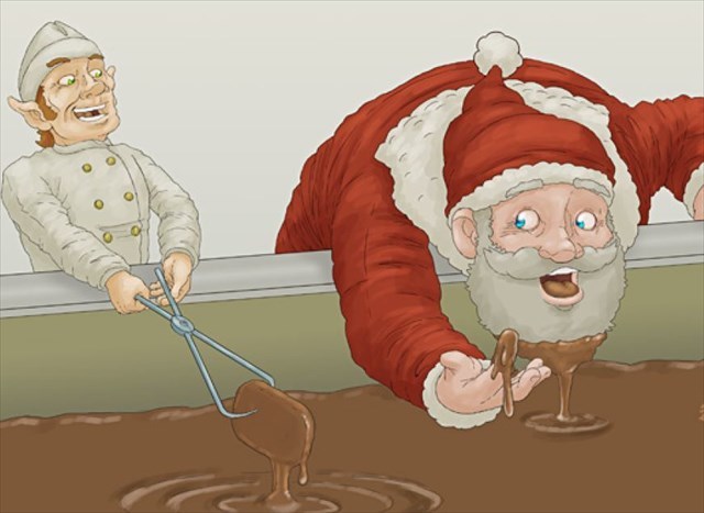 Der Samichlaus betreibt unzählige Backstuben. In der Backstube mit der Nummer GCAD3ZH werden Lebkuchen mit Schokolade überzogen.