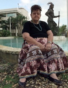 Betty Mae Tiger Jumper, also known as Potackee (Seminole), was the first, and so far the only female chairperson of the Seminole Tribe of Florida (at the time of this geocache hide). A nurse, she co-founded the tribe's first newspaper, the Seminole News, later replaced by The Seminole Tribune, for which she served as editor, winning a Lifetime Achievement Award from the Native American Journalists Association. In 2001 she published her memoir, entitled A Seminole Legend.
